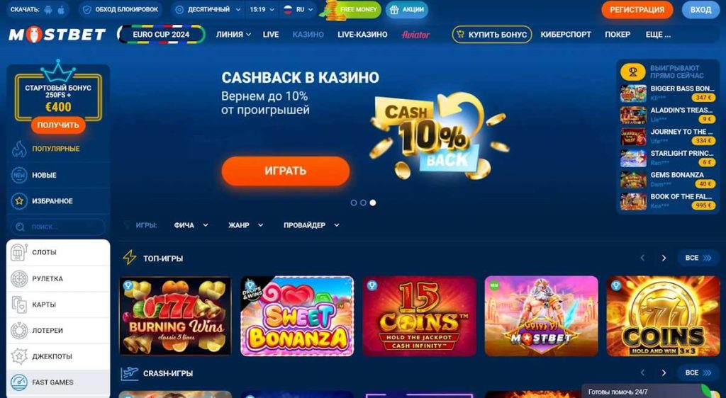 В разделе слотов собраны сотни популярных игровых автоматов от ведущих мировых разработчиков. Онлайн-казино Mostbet играть на деньги можно в такие хиты, как Book of Dead, Sweet Bonanza, Gates of Olympus, Aviator, Lucky Streak, Sunstrike, Burning Wins и многие другие.
